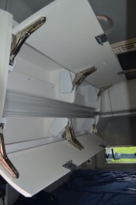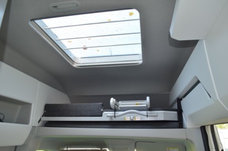 Wybierając się na wakacje Volkswagenem Grand Californią, nie trzeba się specjalnie ograniczać. Do dyspozycji mamy spore zamykane schowki ulokowane przy suficie w tylnej części zabudowy oraz dużo półek i półeczek rozmieszczonych wszędzie,gdzie to tylko możliwe, łącznie z łazienką.