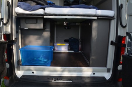 Samochód ma 110-litrowy zbiornik na wodę czystą i 90-litrowy na brudną. Oba mają czujniki poziomu napełnienia, dzięki czemu wiemy, kiedy kończy się czysta woda oraz miejsce na brudną. Dodatkowo zbiornik świeżej wody jest chroniony przed mrozem. Oznacza to, że zimowe wypady tym autem są jak najbardziej możliwe.