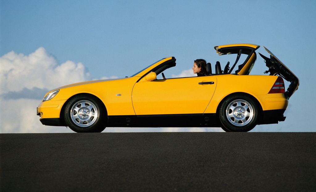 Składany stalowy dach SLK był rozwiązaniem wybitnym i podziwianym. Sam pomysł nie był w branży motoryzacyjnej zupełnie nowy – ale szereg wcześniejszych projektów wiązał się z chowaniem całego dachu do bagażnika, a to ograniczało przestrzeń użytkową. Inżynierowie Mercedes-Benz zrewolucjonizowali tę koncepcję: dach ze stalowo-szklanych paneli „znikał” pod pokrywą bagażnika odchylaną do tyłu. Dzięki temu tył nadwozia mógł być krótki, a miejsce na bagaż pozostawało nawet w przypadku złożonego dachu.