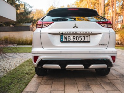Tylne lampy, wykonane w technologii LED w kształcie litery T, sięgają wysoko ku górze a ich iluminacja sprawia, że nowy model rzuca się w oczy. Auto wyróżnia się także nowym wzorem 18-calowych aluminiowych obręczy kół. Warto tu wspomnieć, że Eclipse Cross plug – in to nie adaptowana wersja auta spalinowego, ale model zaprojektowany jako samochód elektryczno – hybrydowy. Dzięki temu akumulator trakcyjny umieszczono w podłodze i nie ogranicza on funkcjonalności, czy przestrzeni bagażnika, która urosła do 359 l. a głębokość bagażnika jest teraz większa aż o 8 cm. Dzięki temu zmieszczą się tutaj np. 3 duże walizki co umożliwi wyjazd na rodzinne wakacje.