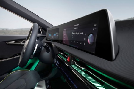 Po zajęciu miejsca za kierownicą EV6 uwagę zwraca zakrzywiony ekran, który łączy zestaw wskaźników przed kierowcą i wyświetlacz systemu multimedialnego na konsoli środkowej. Obydwa mają przekątną po 12 cali i zapewniają doskonałą czytelność wyświetlanych informacji. Prosta forma szerokiego ekranu i deski rozdzielczej potęgują przestronność wnętrza. Z minimalistyczną formą idzie w parze ograniczona do minimum liczba przycisków i pokręteł, które zapewniają bezpośredni dostęp do najważniejszych funkcji oraz czynią obsługę prostą i intuicyjną.