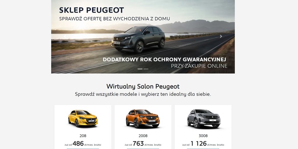 Kupując online klienci mogą wybierać samochody spośród bogatej gamy modeli Peugeot w ramach strategii „Power of choice” zakładającej, że klient wybiera w pierwszej kolejności model, a następnie układ napędowy, który odpowiada jego upodobaniom czy potrzebom, bez konieczności pójścia na kompromis jeśli chodzi o design czy inne walory samochodu. Marka Peugeot przechodzi proces elektryfikacji i prawie wszystkie jej osobowe modele są już dostępne, poza klasycznym napędem spalinowym, w wersji w 100% elektrycznej (e-208, e-2008) lub hybrydowej (508 Hybrid, 508 SW Hybrid, 3008 Hybrid oraz 3008 Hybrid4). Z wymienionych modeli aż dwa to laureaci najbardziej prestiżowego konkursu motoryzacyjnego Car Of The Year: 3008 w 2017 roku i 208 w 2020 roku. W najbliższym czasie do oferty trafi najnowszy model marki spod znaku lwa – Peugeot 308 z alternatywnym napędem: spalinowym lub hybrydowym. Będzie on również dostępny w sprzedaży online.