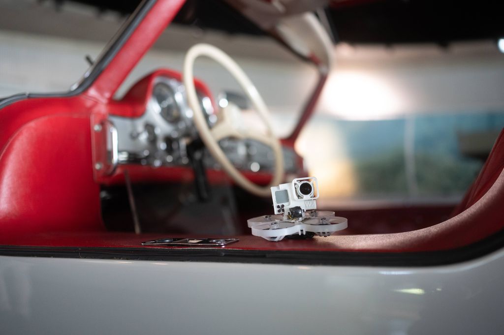 Ekspresowe zwiedzanie muzeum od dachu aż po poziom wejścia umożliwia zjawiskowy film z drona. Czterominutowy klip w spektakularny sposób prezentuje wnętrza budynku, w tym „przelot” przez wnętrze legendarnego Mercedesa 300 SL Coupé. Gdy film opublikowano wiosną 2020 r., w ciągu pierwszych kilku dni na YouTubie i w kanałach mediów społecznościowych Muzeum Mercedes-Benz obejrzano go kilka milionów razy.