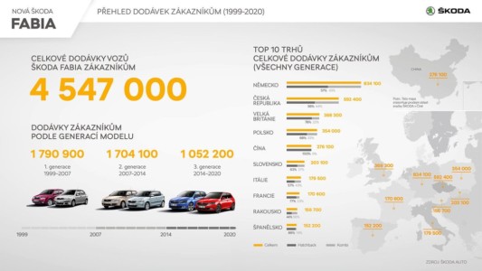 Warto przypomnieć, że pierwsza generacja modeli Škoda Fabia miała premierę w 1999 roku i ze sprzedażą 1,7 mln egz. stała się jednym z najlepiej sprzedających się modeli w swoim segmencie. Druga generacja zadebiutowała w 2007 roku, a trzecia w 2014 roku. Na całym świecie sprzedano 4,5 mln egzemplarzy.