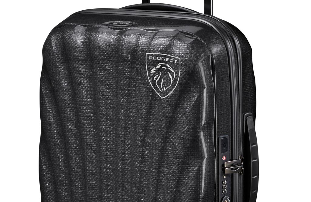 Nowa walizka kabinowa opatrzona logotypem Peugeot odpowiada modelowi Samsonite C-Lite. Wykonana jest z trwałego i lekkiego tworzywa CURV o wyjątkowej odporności na uderzenia w każdych warunkach. Jej wymiary (55 x 40 x 20 do 23 cm z możliwością rozsuwania) i waga 2,1 kg sprawiają, że staje się idealnym towarzyszem wypadów weekendowych lub krótkich podróży samochodem, pociągiem lub samolotem. Cztery kółka i wydłużona podwójna rączka teleskopowa gwarantują maksymalną łatwość przemieszczania się.