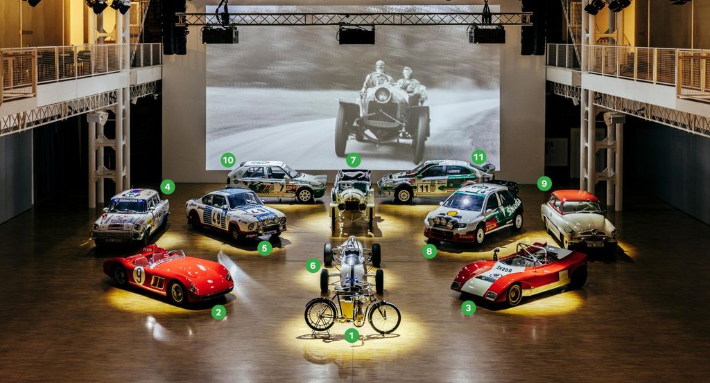 Prezentowany na wystawie jednocylindrowy motocykl Laurin & Klement BZ z 1903 roku sięga początków sportów motorowych, a L&K FC (1909) reprezentuje pierwszą generację samochodów wyścigowych marki. ŠKODA SPORT z niskoprofilowym, otwartym nadwoziem z aluminium wzięła udział w legendarnym 24-godzinnym wyścigu Le Mans (1950).