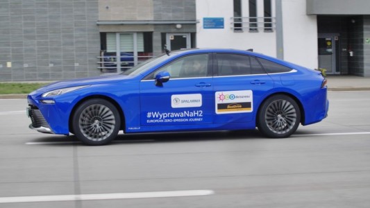 „Dziś jest dla nas wielki dzień – dzień testu, bo sprawdzamy realny zasięg Toyoty Mirai, czyli auta elektrycznego na wodór. Arkady wyruszył z Warszawy, mając zbiorniki nie do końca napełnione. Komputer pokładowy pokazywał 470 km zasięgu, a do przejechania było prawie 600 km. Był to więc prawdziwy test wydajności napędu nowego Mirai” – relacjonuje Robert Mularczyk, PR Senior Manager Toyota Motor Poland.