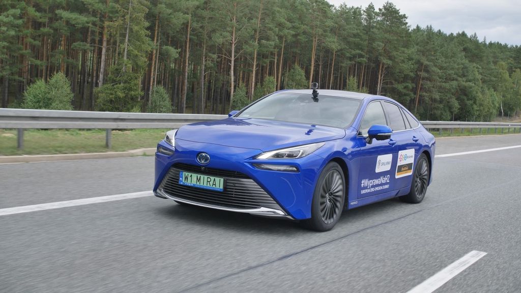 „Dziś jest dla nas wielki dzień – dzień testu, bo sprawdzamy realny zasięg Toyoty Mirai, czyli auta elektrycznego na wodór. Arkady wyruszył z Warszawy, mając zbiorniki nie do końca napełnione. Komputer pokładowy pokazywał 470 km zasięgu, a do przejechania było prawie 600 km. Był to więc prawdziwy test wydajności napędu nowego Mirai” – relacjonuje Robert Mularczyk, PR Senior Manager Toyota Motor Poland.
