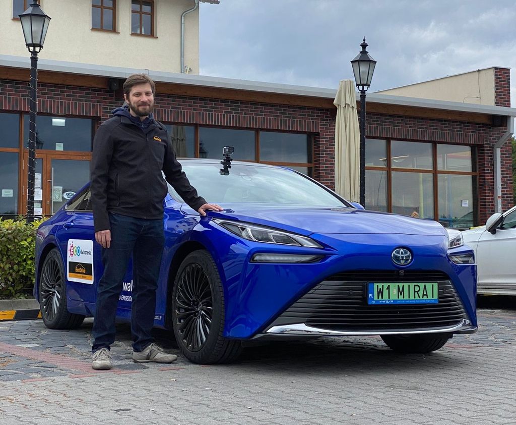 „Dziś jest dla nas wielki dzień – dzień testu, bo sprawdzamy realny zasięg Toyoty Mirai, czyli auta elektrycznego na wodór. Arkady wyruszył z Warszawy, mając zbiorniki nie do końca napełnione. Komputer pokładowy pokazywał 470 km zasięgu, a do przejechania było prawie 600 km. Był to więc prawdziwy test wydajności napędu nowego Mirai” – relacjonuje Robert Mularczyk, PR Senior Manager Toyota Motor Poland.