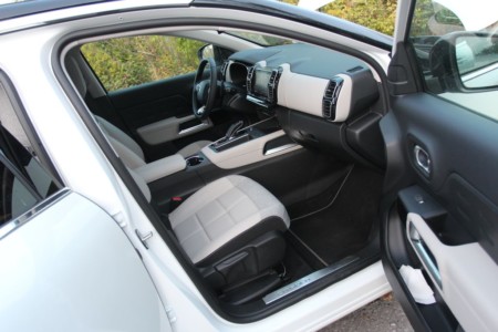 Fotele C5 Aircross mają szerokie siedziska i oparcia. Innowacyjna konstrukcja, łącząca gęstą piankę w centralnej części siedziska ze strukturalną pianką o grubości 15 mm na jego powierzchni, zapewnia odpowiednią miękkość i doskonalą stabilność ciała podczas jazdy bez efektu zapadania się w fotelu. Przednie fotele mają regulację wysokości, ich zagłówki można regulować na wysokość i głębokość. Są podgrzewane i mają funkcję wielopunktowego masażu. Kierowca i pasażer mogą za pośrednictwem ekranu dotykowego wybrać jeden z pięciu dostępnych programów, łączących masaż odcinka lędźwiowego, pleców i ramion.