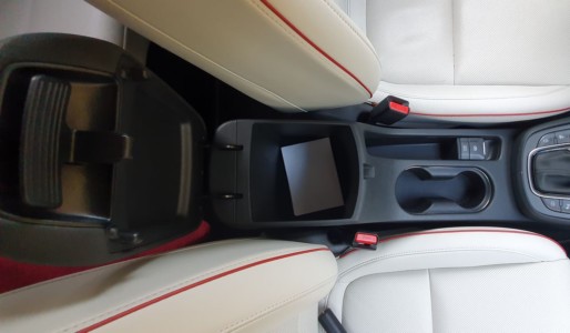 System multimedialny z 8-calowym ekranem dotykowym, ma dość przyjazne oprogramowanie, które pozwala dostosować kolejność ikonek aplikacji do własnych upodobań. Z telefonem łączymy się za pomocą Bluetootha lub złącza USB – co pozwala korzystać np. z Android Auto. W konsoli środkowej mamy do dyspozycji dwa gniazda USB i jedno 12 V oraz ładowarkę indukcyjną do telefonu. Przed pasażerem jest zamykany schowek, a pomiędzy przednimi fotelami, dzięki zastosowaniu elektrycznego hamulca postojowego udało się wygospodarować miejsce na dwa kubki i dodatkowo na drobiazgi, które chcemy mieć pod ręką.