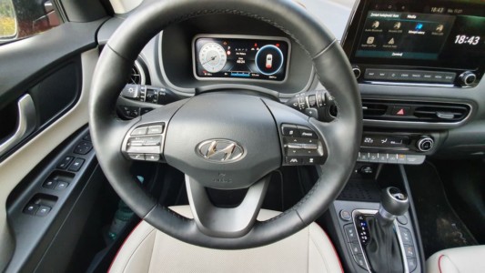 Prawie 200 KM robi w tym samochodzie swoje, i choć mamy do czynienia z wysilonym silnikiem o pojemności 1,6 l, wrażenia z jazdy są bardzo dobre, jednak okupione zużyciem paliwa, które mogłoby być mimo wszystko niższe. Kona powinna się sprawdzić zarówno w mieście, jak i na autostradzie, ale jest też dobrą propozycją dla tych, co do domu muszą przedzierać się przez las. Ten samochód jest nie za duży, nie za mały. W sam raz.