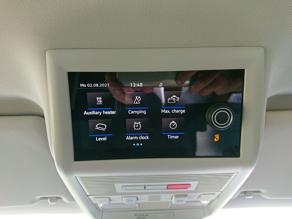 Funkcjami w pojeździe możemy sterować za pomocą elektronicznego panelu. Można na nim ustawić tryb kempingowy, który pozwala zarządzać oświetleniem, temperaturą w środku, a nawet ustawić budzenie.