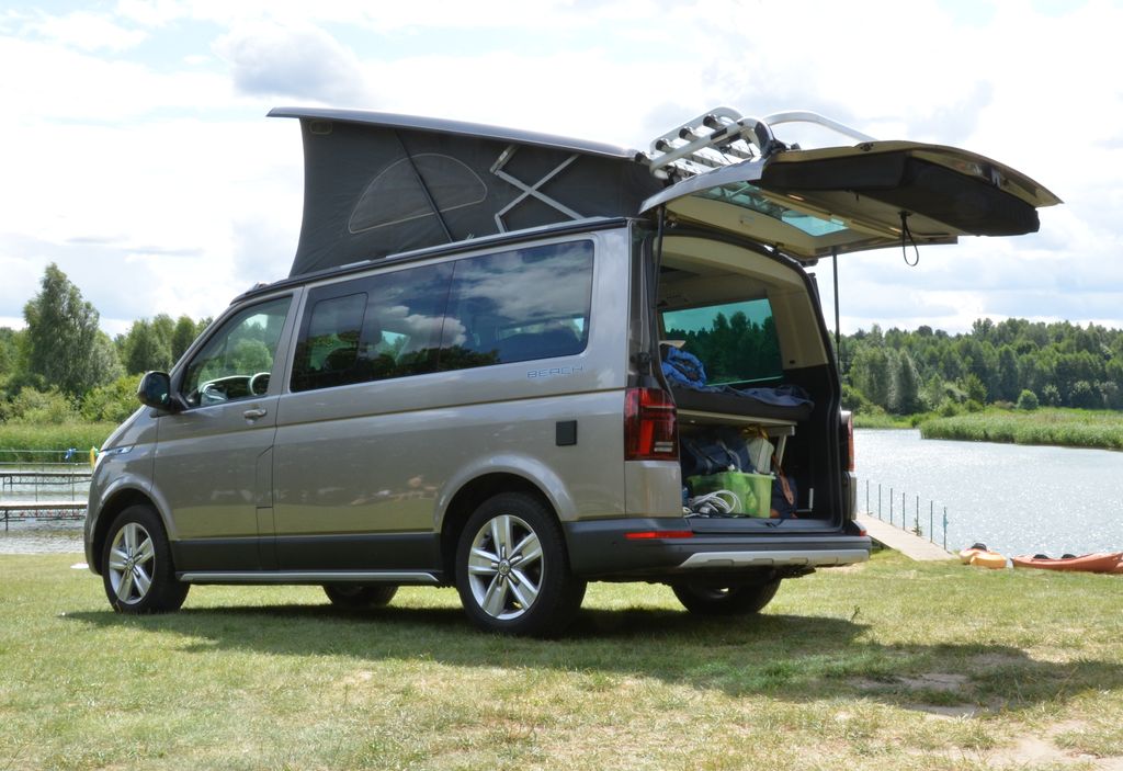 California Beach w wersji Camper ma sporo zalet: z zewnątrz praktycznie nie przypomina samochodu kampingowego, ma kompaktowe rozmiary – bez problemu mieści się na standardowych miejscach parkingowych i na co dzień może nam służyć jako auto rodzinne, a nawet firmowe. Latem, gdy tylko mamy na to ochotę, możemy się nią wybrać, gdziekolwiek nam się zamarzy, ponieważ szybko zmienia się w sypialnię, jadalnię i salon.