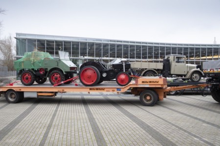 Równolegle z transportem archiwalnych dokumentów, w ramach pierwszego transferu ze Stuttgartu do Wörth przewieziono następujące zabytkowe pojazdy użytkowe: autobus panoramiczny Mercedes-Benz O 321 H (1962), ciężarówkę Mercedes-Benz L 1500 z generatorem gazu drzewnego (1937), Unimoga 70200 No. 2 (Gebr. Böhringer, 1946), ciągnik Mercedes-Benz OE z silnikiem wysokoprężnym (1926). Do transportu tych pojazdów wykorzystano dwa pojazdy Mercedes-Benz Actros i Unimoga U530 z aktualnej oferty Mercedes-Benz Trucks, a towarzyszył im rajdowy Unimog U400, który pełnił rolę pojazdu serwisowego podczas rajdu Paryż-Dakar w 2006 r.
