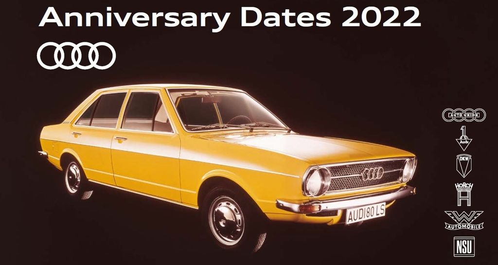 Cztery pierścienie przypominają o połączeniu w czerwcu 1932 roku czterech firm: Audi, DKW, Horch i Wanderer i o utworzeniu z nich Auto Union AG. Cyfrowa broszura zawiera przegląd wszystkich rocznicowych dat Audi na rok 2022 i jest już dostępna do pobrania w Audi MediaCenter.