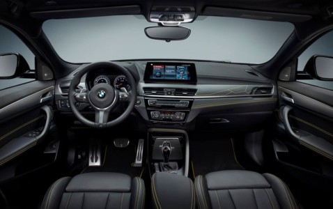 Połączenie elementów wyposażenia charakterystycznych dla M z innowacyjnymi detalami sprawia, że wnętrze BMW X2 Edition GoldPlay jest równie sportowe, co ekskluzywne. Kierownica skórzana M z przyciskami wielofunkcyjnymi, antracytowa podsufitka, pedały M i podnóżek M ze stali szlachetnej oraz kluczyk z charakterystycznym oznaczeniem M podkreślają sportowy charakter samochodów tej edycji. Starannie rozmieszczone akcenty tworzą powiązanie stylistyczne z ich wyglądem zewnętrznym. Należą do nich nowe listwy progowe, których matowe powierzchnie mają strukturę zaczerpniętą z siatkowego wzoru atrapy chłodnicy BMW i opatrzone są napisem „Edition” w kolorze złotym galwanicznym. Matowe listwy dekoracyjne w kolorze ciemnego grafitu, również zaprojektowane specjalnie dla tej edycji, mają w obszarze deski rozdzielczej po stronie pasażera grafikę odpowiadającą foliowaniu zewnętrznemu. Zastosowano tu po raz pierwszy technikę grawerowania laserowego, w której na powierzchnię listwy dekoracyjnej nanoszona jest grafika w metalizowanym kolorze złotej miki, a następnie zabezpieczana bezbarwnym lakierem.