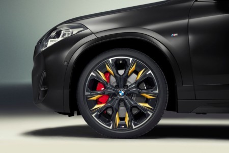 Do tego dochodzi inspirowana sportami motorowymi siatkowa atrapa chłodnicy M w błyszczącym kolorze czarnym. Charakterystyczna dla tej edycji ekstrawagancja jest wyrażona za pomocą obramowania atrapy chłodnicy i lusterek zewnętrznych w ekskluzywnym kolorze złotym galwanicznym. Efektowne wkładki z nową dwukolorową grafiką i akcentami kolorystycznymi w kolorze złotym galwanicznym zdobią także 19-calowe aerodynamiczne obręcze kół M wchodzące w skład wyposażenia pojazdów tej edycji. Opcjonalnie dostępne 20-calowe aerodynamiczne obręcze kół M mają również wstawki o indywidualnym wzorze graficznym z akcentami w kolorze złotym galwanicznym.