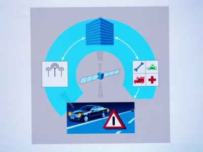 System automatycznych połączeń alarmowych został opracowany w ramach europejskiego projektu badawczo-rozwojowego PROMETHEUS. „Panowała wtedy atmosfera optymizmu, jeśli chodzi o rozwój połączenia elektroniki i informatyki z telekomunikacją” – wspomina prof. Hermann Gaus, były dyrektor Mercedes-Benz ds. zasadniczej konstrukcji samochodów oraz elektryki/elektroniki. „Zaowocowało to zupełnie nowymi możliwościami również w sektorze motoryzacyjnym. Pomysł automatycznego połączenia alarmowego pojawił się w latach 80., ale warunki techniczne nie były jeszcze wtedy wystarczające”.