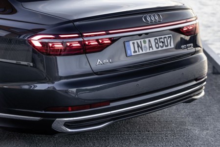 Odświeżone A8 jest standardowo wyposażone w cyfrowe światła tylne OLED (OLED = organiczna dioda elektroluminescencyjna). Zamawiając samochód można wybrać jedną z dwóch tylnych sygnatur świetlnych, w modelu S8 — jedną z trzech. Kiedy w systemie wyboru dynamiki jazdy Audi drive select wybrany zostanie tryb dynamic, sygnatura świateł staje się szersza. Taka sygnatura dostępna jest tylko w tym trybie.