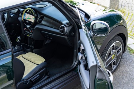 Lakier w kolorze Rebel Green, zarezerwowany dotychczas dla ekstremalnie sportowych modeli John Cooper Works, oraz kontrastujący z nim kolor Pepper White na dachu i lusterkach zewnętrznych nadają MINI Cooper SE Resolute Edition sportowy wygląd w tradycyjnym brytyjskim stylu. Rezygnacja z chromowanych elementów zewnętrznych to ukłon w stronę przyszłości. Zamiast tego typowe dla marki elementy stylistyczne są wykończone w ekskluzywnym kolorze Resolute Bronze. Obejmują one obramowania reflektorów, atrapy chłodnicy i lamp tylnych, ozdobniki boczne na przednich błotnikach oraz uchwyty drzwi i klapy tylnej. Okalająca samochód listwa na dolnej krawędzi szyb wykończona jest natomiast, podobnie jak wewnętrzne obramowanie atrapy chłodnicy, logo marki i oznaczenie modelu, w kolorze Piano Black.
