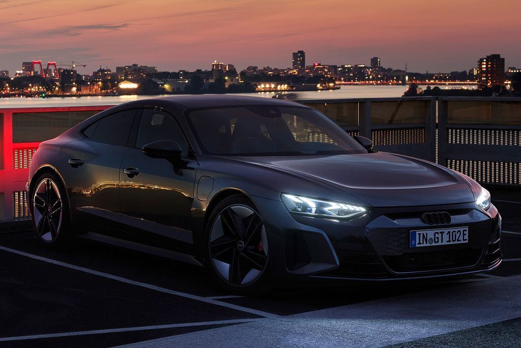 Reflektory przednie modeli e-tron GT quattro i RS e-tron GT to trójwymiarowe rzeźby o dynamicznym charakterze i nowoczesnej estetyce. Reflektory w kształcie litery V w modelu e-tron GT quattro występują w trzech wersjach: LED, Matrix LED oraz światła laserowe jako dodatkowe światła drogowe. Dodatkowe, laserowe światła drogowe dostępne są jako opcja dla e-tron GT quattro i RS e-tron GT. Montowane są w finezyjnie zaprojektowanej ramce w kształcie litery X. Dolna część reflektora składa się z pojedynczych elementów o krawędziach podświetlonych na niebiesko.
