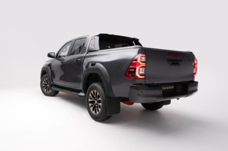 Wersja GR SPORT rzuca się w oczy nie tylko czerwonymi elementami układu jezdnego. Samochód ma inspirowany Rajdem Dakar grill we wzór w kształcie litery G w ciemnej kolorystyce, a także napis TOYOTA, który zastąpił emblemat marki. To nawiązanie do dziedzictwa tego modelu i klasycznych Hiluxów czwartej generacji z początku lat 80. Mocna stylistyka przedniej części podkreślona jest nowymi, powiększonymi obramowaniami świateł przeciwmgielnych. Hilux GR SPORT wyróżnia się też dwukolorowymi, 17-calowymi felgami aluminiowymi z oponami terenowymi, a także czarnym motywem na lusterkach, bocznych stopniach, błotnikach, nad przestrzenią ładunkową i w klamce tylnej klapy.