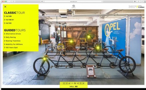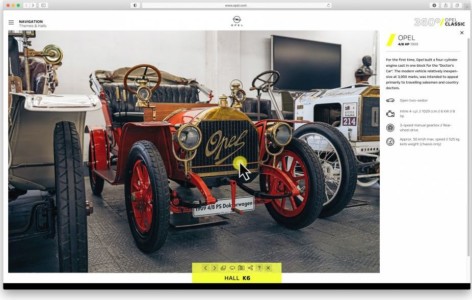 Oglądając zdjęcia w technice 360 stopni, goście mogą wirtualnie przechadzać się po „halach pamięci” i podziwiać kolekcję Opel Classic w Rüsselsheim. Marka ze znakiem błyskawicy zgromadziła w niej prawdziwe skarby: 600 zabytkowych pojazdów i modeli studyjnych, a także 300 innych eksponatów, od maszyn do szycia Opel po silniki samolotowe. Trasa „160 lat Opla” przybliża zarówno początki firmy w latach 60. dziewiętnastego wieku, jak i jej historię w kolejnych dziesięcioleciach. Klikając żółte punkty informacyjne, można wyświetlić najważniejsze informacje o wybranych eksponatach z kolekcji Opel Classic.