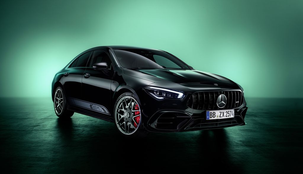 Kompaktowe modele z serii „Edition 55” wyróżniają też dwa metalizowane odcienie nadwozia: czerń kosmosu lub biały digital. Współgra z nimi kolorystyka dekoracji po obu stronach nadwozia, z tradycyjnym emblematem AMG i postępującym efektem przeźroczystości. Z designem karoserii kontrastują 19-calowe wieloramienne obręcze kół AMG, z matowym malowaniem w kolorze szarości tytanu oraz błyszczącym rantem. Dbałość o szczegóły akcentuje korek wlewu paliwa AMG z chromowanym, srebrnym wykończeniem.