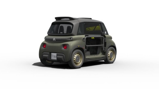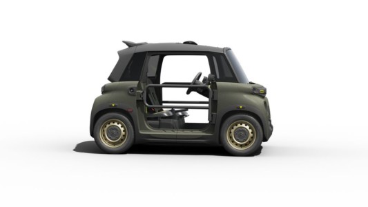 Bliższe spojrzenie i widać brak drzwi i dach, który da się otworzyć, by móc jak najlepiej cieszyć się otoczeniem poza pojazdem, oddychać świeżym powietrzem i poczuć wiatr we włosach. Metalowe rury na zawiasach zastępują drzwi. Jeśli chodzi o składany dach, to jego górna część została wykonana z miękkiego materiału w szarym kolorze, który nawiązuje do modeli Mehari czy 2CV. Tkaninę, z której zrobiony jest dach, można zwinąć. Ma wysoką gęstość, jest wodoodporna i odporna na promienie UV, skutecznie ochroni kierowcę i pasażera przed promieniowaniem słonecznym i gorszymi warunkami pogodowymi. Plandeka jest przymocowana do otworu dachowego za pomocą zatrzasków. Można ją złożyć i w łatwy sposób przechowywać za siedzeniami.