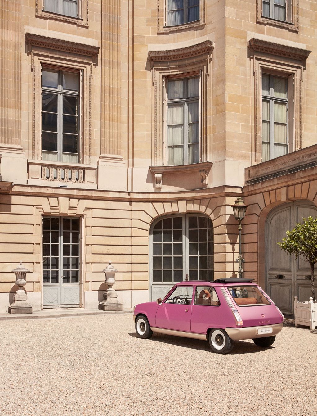 Nadwozie zachwyca czystymi formami, które lepiej podkreślają kultowe linie Renault 5, a tradycyjne dodatki zostały celowo wyeksponowane i zyskały wyrazisty kształt i wykończenie. Reflektory i światła są fasetowane jak kamienie szlachetne, szerokie koła, zapożyczone z wersji Alpine, zostały wygładzone, a w ich centrum znalazło się słońce, tak bliskie sercu Pierre’a Gonalonsa. Nadwozie jest pokryte trójwarstwowym lakierem ze złotymi pigmentami na różowym podkładzie. Pokrywa go srebrzysty lakier, co daje efekt zmiennych refleksów – złotych w słońcu i bardziej niebieskich w cieniu.