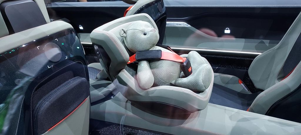 Również materiały wnętrza powstały w procesie recyklingu. Zamontowano sześć siedzeń, a w miejscu siódmego zamontowano fotelik dla dziecka. W tylnej części pojazdu zamontowano kamerę, które go monitoruje.