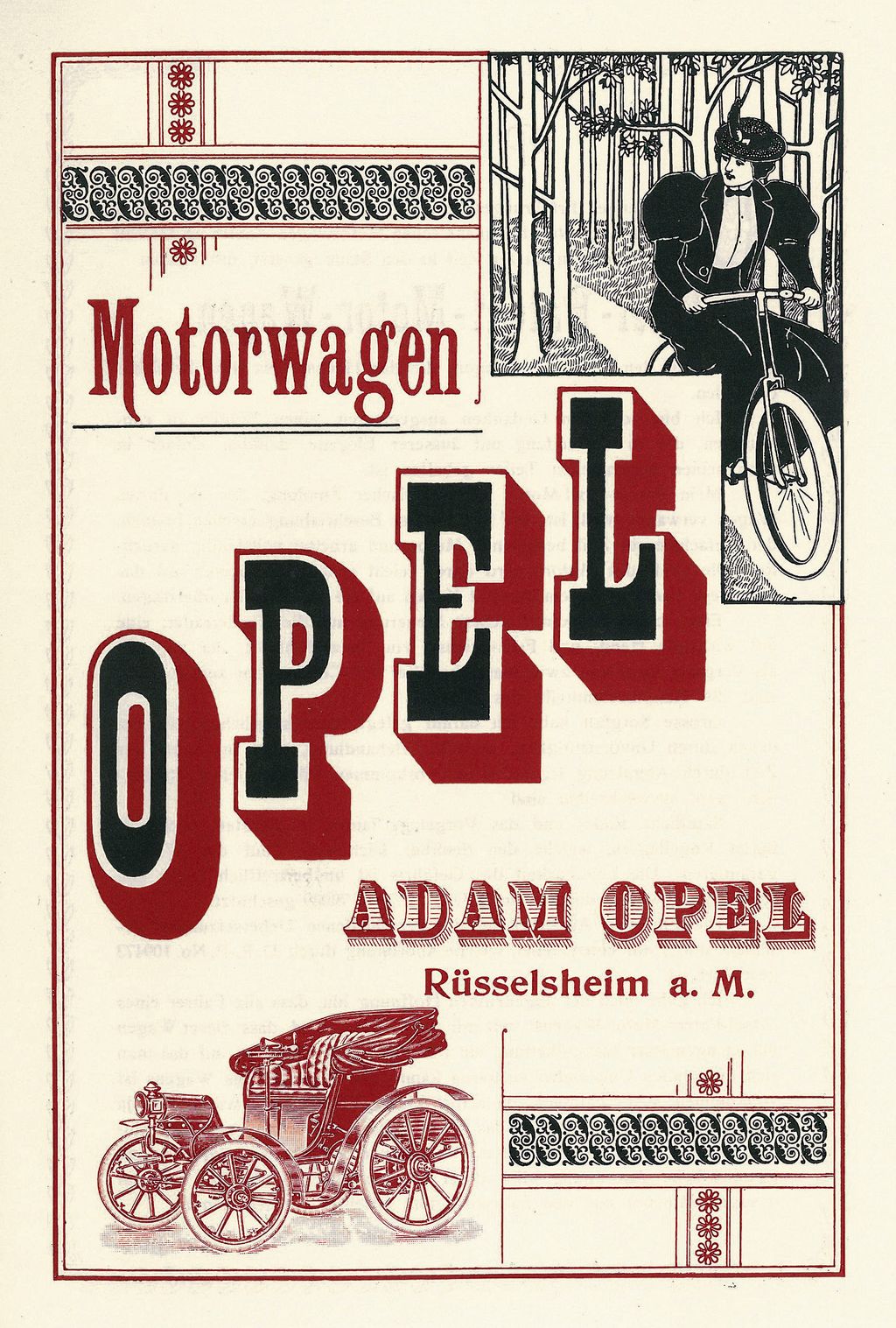 Industrializacja w latach 80. dziewiętnastego wieku otworzyła przed rodziną Opel nowe możliwości biznesowe. W czasie podróży do Paryża w 1884 r. Adam Opel zapoznał się z bicyklem – w stolicy Francji takie pojazdy były już powszechnym środkiem lokomocji. Przedsiębiorca kupił sobie taki bicykl, a już po kilku miesiącach, w 1886 r., zaczął produkcję własnych rowerów tego typu w fabryce w Rüsselsheim. Jesienią 1887 r. ukazał się ilustrowany cennik, który oficjalnie zapoczątkował nowy, ważny okres w historii firmy.