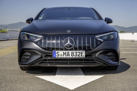 Dedykowana osłona chłodnicy AMG, rozszerzająca się ku dołowi z jej pionowymi żebrami, nawiązuje do odnoszącego sukcesy na całym świecie wyścigowego modelu 300 SL, który w 1952 r. wygrał legendarny wyścig drogowy Panamericana w Meksyku. Pokazowy samochód Vision AMG pokazuje, jak może wyglądać przyszłość grilla AMG – panel przyjmuje kolor nadwozia, ale zachowuje charakterystyczną formę z pionowymi listwami, a podświetlenie sprawia, że pozostaje natychmiast rozpoznawalny nawet po zmroku.