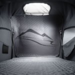W rozłożonej pozycji powierzchnia podłogi ma wymiary 210 x 130 cm. Namiot wyposażono w komfortowy materac z pianki o dużej gęstości, a jego ściany wykonano z oddychającej mieszanki bawełny. Dzięki wodoodpornym zamkom i osobnej osłonie przeciwdeszczowej nad wejściem namiot sprawdza się również podczas deszczowej aury. Boczne ściany naśladują profil 911 (tzw. flyline) i mają napis „PORSCHE”. Do kluczowych elementów wyposażenia wnętrza należy wysoce izolujące pikowane obicie w jasnoszarym kolorze. Ten sam pikowany wzór zdobi materac. Na wezgłowiu umieszczono rysunek gór.