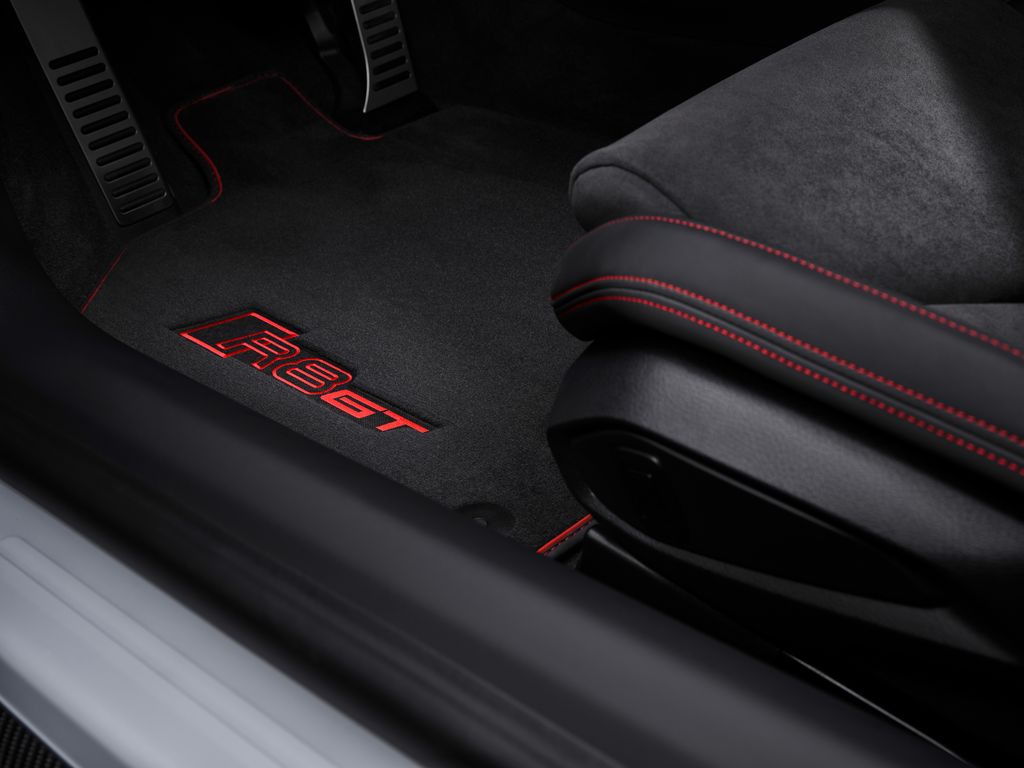 Patrząc do wnętrza nowego modelu, zauważyć można, że Audi Sport GmbH oddaje hołd pierwszemu R8 GT z 2010 roku. We wnętrzu dominują dwa kolory: czerń i czerwień. Czerwone są również pasy bezpieczeństwa – dostępne w tym kolorze tylko w R8 GT sprzed 12 lat. Na dywanikach i na kubełkowych fotelach R8 umieszczono symbole modelu specjalnego w kolorze czarnym i czerwonym. Największą jednak atrakcją tej wersji jest to, że klienci mogą znaleźć indywidualny numer swojego R8 GT na środku lekko matowej, otoczonej karbonowym wykończeniem dźwigni zmiany biegów.