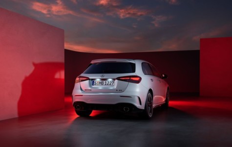 Nową Klasę A sygnowaną przez Mercedes-AMG natychmiast zdradzają odświeżone reflektory, charakterystyczna dla AMG osłona chłodnicy i okrągły emblemat z logo AMG zamiast gwiazdy Mercedesa z wieńcem laurowym. Co więcej, wariant A 35 ma teraz spójną twarz AMG – otrzymał nowy przedni zderzak i przetłoczenia inspirowane A 45. Sportowy wygląd podkreślają nowy wzór obręczy, tylny spojler, zmienione tylne lampy oraz charakterystyczne, okrągłe końcówki układu wydechowego (podwójne w A 45 S 4MATIC+).