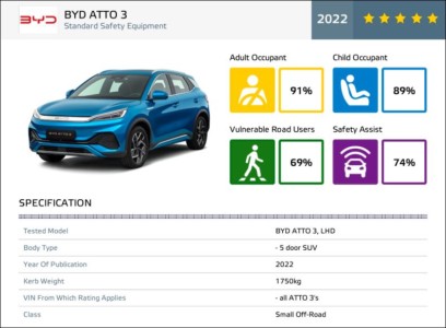 Pięć gwiazdek dla nowicjusza BYD ATTO 3 (w Chinach znanego jako Yuan Plus) kontynuuje pasmo sukcesów chińskich marek w Euro NCAP, po podobnych wynikach dla WEY i ORA. Akronim od Build Your Dreams, BYD jest obecny w Europie od ponad dekady w postaci autobusów, ale pojawienie się ATTO 3 przybliży BYD masom. Przyjazny dla budżetu samochód elektryczny dobrze wypada w testach zderzeniowych Euro NCAP i jest w pełni wyposażony w najnowsze technologie ADAS.