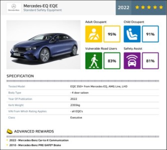 Najlepsze rezultaty we wszystkich próbach zderzeniowych w październikowej sesji otrzymał Mercedes-EQ EQE oraz ocenę „bardzo dobry” za system Highway Assist. Aktywny asystent odległości DISTRONIC z aktywnym asystentem kierowania jest dostępny jako opcja, zapewniając pomoc w prowadzeniu pojazdu na autostradach. System jest pierwszym systemem ocenianym przez Euro NCAP, który, jeśli kierowca przestanie reagować, bezpiecznie manewruje samochodem na najwolniejszy pas przed zatrzymaniem. Ta funkcja Highway Assist, zwana aktywnym asystentem zatrzymania awaryjnego, pomaga nadać EQE ocenę „Bardzo dobry” i sprawia, że jest to samochód o najwyższych wynikach w testach Euro NCAP w dotychczasowych ocenach wspomaganej jazdy.