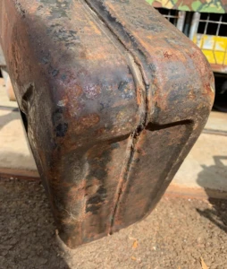Kanister składał się z dwóch części, które trzeba było zespawać. Jednocześnie spaw znajduje się poniżej poziomu ścian bocznych, dzięki czemu nie jest podatny na uszkodzenia w przypadku uderzenia. Charakterystyczne listwy boczne spełniały wówczas podwójną funkcję. Z jednej strony zwiększały one wytrzymałość kanistra (podobnie jak w przypadku, gdy komercyjne Citroën 2CV otrzymały karbowaną blachę karoserii), a ponadto umożliwiały rozszerzanie lub kurczenie się zawartości cieczy w zależności od warunków zewnętrznych. Dodatkowo przy prawidłowym napełnieniu kanistra w podwyższonej części za uchwytem pozostawała kieszeń powietrzna, dzięki której kanister nawet pływał.