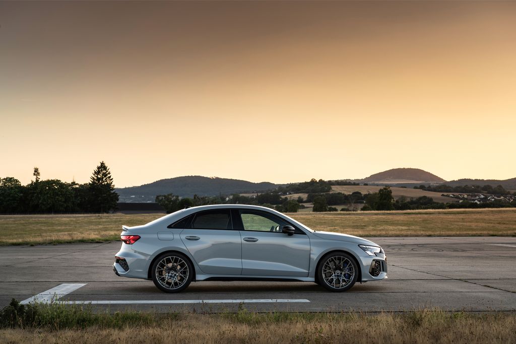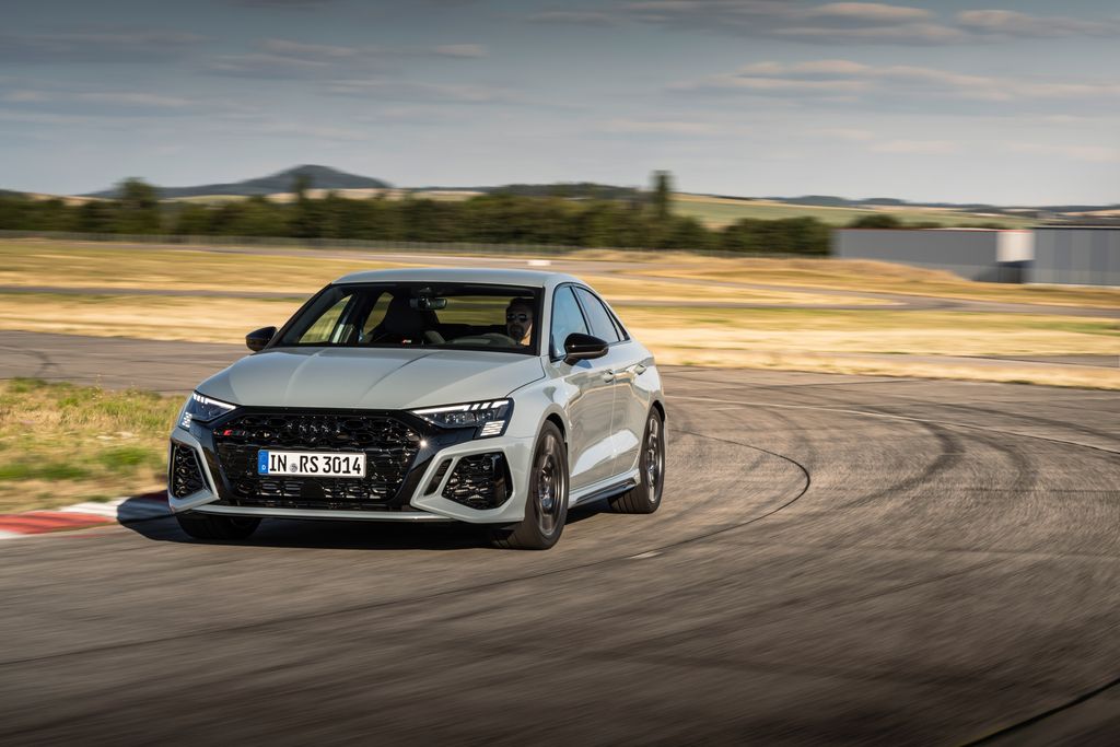 Audi RS 3 Sedan performance edition, Dynamic photo, Colour: Arrow Gray, Pearl Effect.