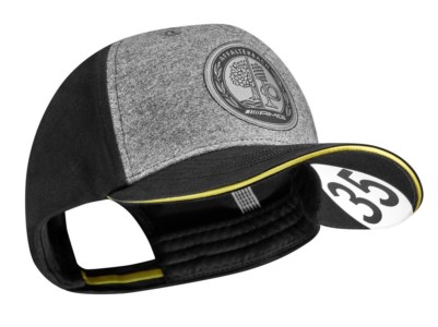 Czarno-szara czapka z daszkiem jest w 100% wykonana z bawełny i zapewnia wysoki komfort. Srebrny klips pozwala idealnie dopasować ją do kształtu głowy. Czapka imponuje również wizualnie – akcentami w kontrastowym, żółtym kolorze oraz spodem daszka z nadrukiem liczby 35. Z przodu uwagę zwracają naszywka z herbem Affalterbach i srebrne, wyhaftowane historyczne logo AMG.