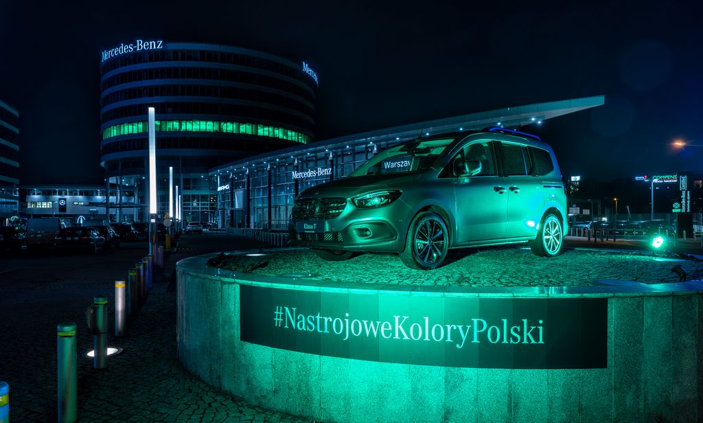 Sekret akcji polega na ciekawej grze kolorów. Codziennie, w godz. 19-24 podświetlenie części jednego z pięter siedziby Mercedes-Benz, a także specjalnie przygotowanej ekspozycji z nową Klasą T w roli głównej, będzie się zmieniać, zgodnie z dominującymi nastrojami. Każdy z ośmiu kolorów ambientowego oświetlenia wnętrza modelu samochodu, będzie miał przypisany „swój nastrój”, np. szczęście rozświetli się na żółto, relaks rozpoznamy dzięki zieleni, a miłość i spokój odznaczać się będą kolejno na czerwono lub biało. Wynikami tego intrygującego eksperymentu marka podzieli się z nami na specjalnym landing page’u i w mediach społecznościowych. Główny przekaz warto jednak śledzić na żywo z poziomu Alei Jerozolimskich w Warszawie – w czym pomogą kamery live.