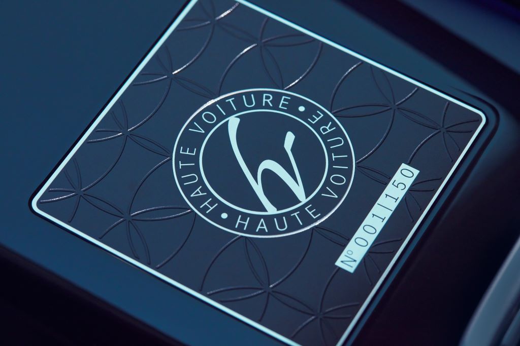 Stylizacja nadwozia ma swoją harmonijną kontynuację w kolorystyce wnętrza, zdominowanej przez odcienie niebieski nautic metalik i różowego złota, z białymi elementami z kryształowym oraz błyszczącym, opalizującym wykończeniem. Kabina prezentuje niezwykłą dbałość o szczegóły, która perfekcyjnie podkreśla nawiązania do świata wysokiego krawiectwa – Haute Couture. Niezmiennym motywem modelu pozostaje inspirowana modą wysokiej jakości tkanina bouclé (pol. bukla, rodzaj mięsistej dziadziny z przędzy pętelkowej) w odcieniach niebieskim, beżowym, różowego złota oraz złotym, z wyszukanymi detalami na tapicerce foteli. Podróżujących otulają obicia z krystalicznie białej skóry na konsolach, drzwiach oraz swobodnie ułożonych poduszkach. Dywaniki wykonano z lnu i moheru. W przestronnej tylnej części kabiny czekają kieliszki do szampana w kolorze różowego złota oraz emblemat Haute Voiture na panelu drzwi. Seryjną limuzynę wyróżniają również niebieskie skórzane lamówki na konsolach.