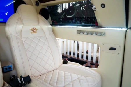 Jednak wiele zmian znajdziemy we wnętrzu. Nie zmieniła się przednia część kabiny, a więc miejsce pracy kierowcy i współpasażera. Natomiast tylna część pojazdu oferuje komfort na najwyższym poziomie. Wsiadanie odbywa się po podniesieniu skrzydlatych drzwi, co zapewnia duże ułatwienie.Z czterech foteli, dwa są obrotowe, które możemy ustawiać według własnych potrzeb. Odpowiedni do charakteru tej limuzyny zapewniają podświetlane elementy wnętrza.