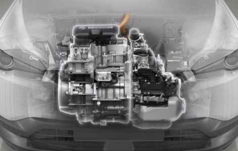 Mazda zdecydowała się na zastosowanie silnika rotorowego do zasilania generatora, wykorzystując wyjątkową zdolność silnika Wankla do wytwarzania wymaganej mocy przy użyciu niewielkiej jednostki napędowej. Opracowany od podstaw silnik rotorowy 8C umieszczono pod maską obok generatora i silnika elektrycznego o dużej mocy. Ten kompaktowy, elektryczny zespół napędowy jest sparowany z akumulatorem litowo-jonowym o pojemności 17,8 kWh i 50-litrowym zbiornikiem benzyny, tworząc unikatowy, szeregowy układ hybrydowy typu plug-in o bardzo konkurencyjnym całkowitym zasięgu.