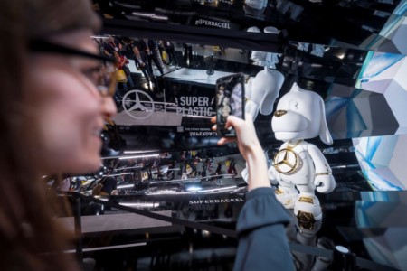 Techniczne dyskusje na stoisku Mercedes-Benz podczas targów CES 2023 zakończyło ogłoszenie współpracy Mercedes-Benz z wschodzącą marką rozrywkową SUPERPLASTIC. Galen McKamy, dyrektor kreatywny SUPERPLASTIC, dołączył do Alexandra Helfa, szefa komunikacji Mercedes-Benz ds. marki, designu i lifestyle’u, aby zaprezentować zupełnie nową postać w uniwersum SUPERPLASTIC – Superjamnika. Wywodzi się ona od klasycznej figurki psa z kiwając głową – ikony popkultury, która zdobi deski rozdzielcze pokoleń kierowców na całym świecie. Superjamnik zadebiutował w animowanym, krótkometrażowym filmie, a jego 2,5-metrowa figura stanęła na stoisku Mercedes-Benz, nieopodal VISION EQXX. Poza tym goście mogli oglądać tam nowe elektryczne modele z gwiazdą: EQE SUV 500 4MATIC oraz limuzynę o wysokich osiągach Mercedes-AMG EQS 53 4MATIC+.