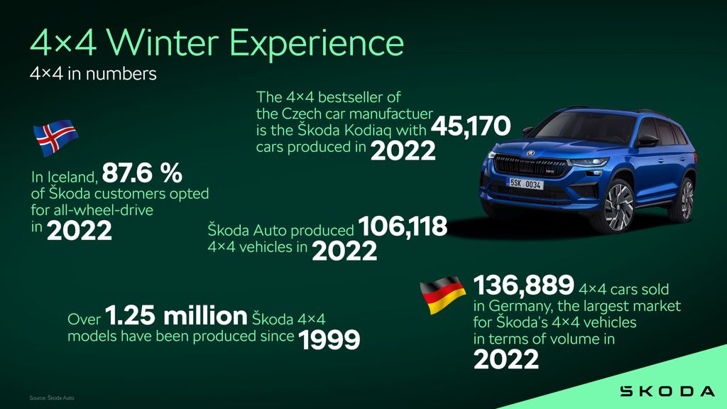 W aktualnej ofercie Škoda Auto ma sześć modeli z napędem 4×4. To dwa modele z napędem elektrycznym:  Enyaq iV i Enyaq Coupé iV oraz Octavia i Superb, a także Karoq i Kodiaq. W 2022 roku wyprodukowano łacznie 106 118 samochodów z takim napędem.
