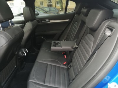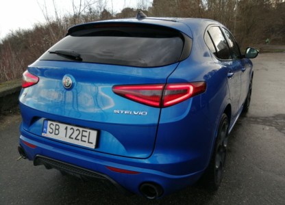 Ta marka zawsze miała swój niepowtarzalny styl, który uwielbiają użytkownicy. Chociaż w Stelvio wykorzystano najnowsze trendy, to jednak znajdujemy w nim trochę tradycji. Fotel kierowcy jest bardzo wygodny, sportowo wyprofilowany, z mocnymi podparciami bocznymi na siedzisku i oparciu, z elektryczną regulacją ustawień i wysuwaną (ręcznie) przednią częścią siedziska dla lepszego podparcia uda kierowców o wyższym wzroście. Gdy do tego dodamy pionową i wzdłużną regulację kierownicy (u dołu delikatnie spłaszczonej, trójramiennej), to okaże się, że każdy kierowca niezależnie od wzrostu z łatwością może ustawić idealną dla siebie pozycję. Problem mogą stanowić zbyt głęboko umieszczone zamki pasów bezpieczeństwa przednich foteli, co utrudnia trafienie w nie i zapięcie pasów.