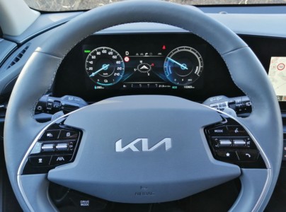Producent do napędu Niro EV zastosował silnik elektryczny o mocy 204 KM i maksymalnym momencie obrotowym 255 Nm. Podczas jazd testowych przekonaliśmy się, że jest to optymalny wybór, tóry pozwala na dynamiczną jazdę i dobre przyspieszanie. Kierowca ma do wyboru cztery tryby jazdy – ECO, Normal, Sport i Snow. Głównie podczas jazdy w aglomeracji miejskiej korzystaliśmy z ustawienia ECO. Dobrym rozwiązaniem okazał się 6-stopniowy system rekuperacji sterowany łopatkami umieszczonymi pod kierownicą. W najmocniejszym ustawieniu aktywuje on tryb i-Pedal, a w ustawieniu Auto dostosowuje moc hamowania do aktualnej sytuacji na drodze.